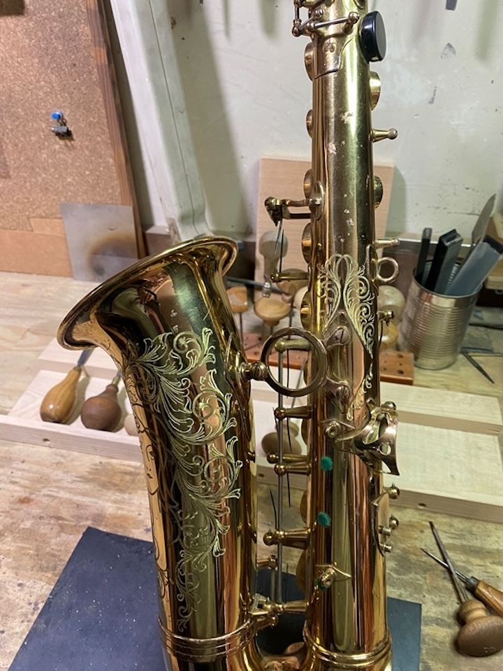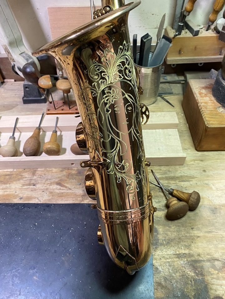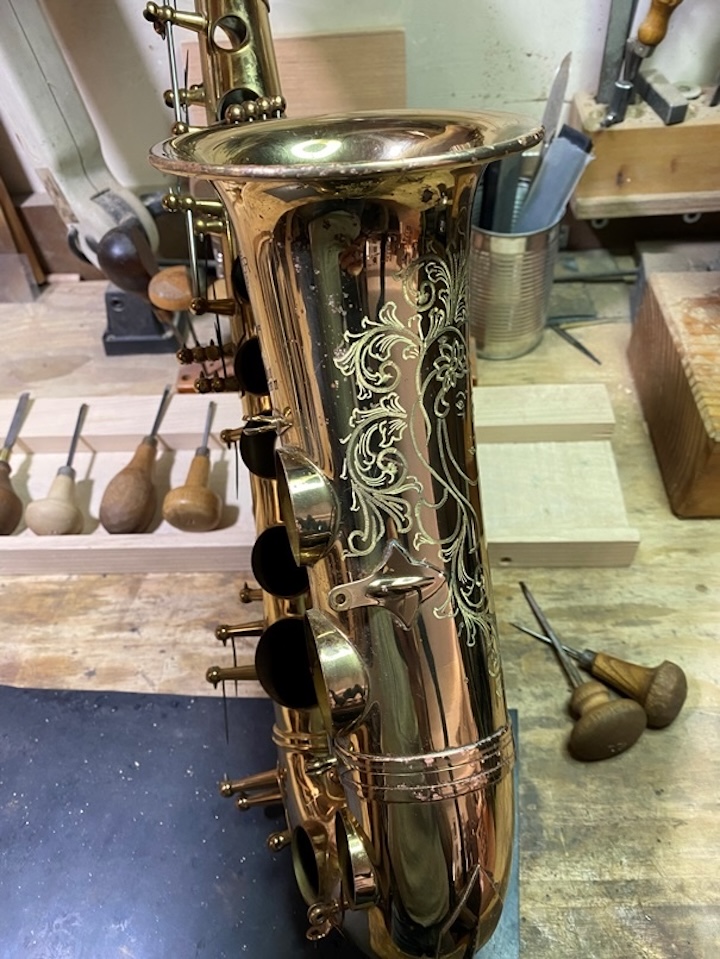 Personnalisation d'un saxo pour Gaëtan, restaurateur d'instruments à vent : https://letempsdsouffler.sitew.fr/